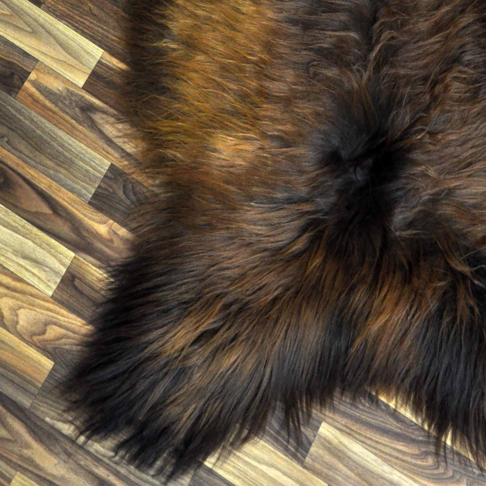 XXL ÖKO Island Schaffell schwarz braun geflammt 125x70 Feuer Kamin #9637