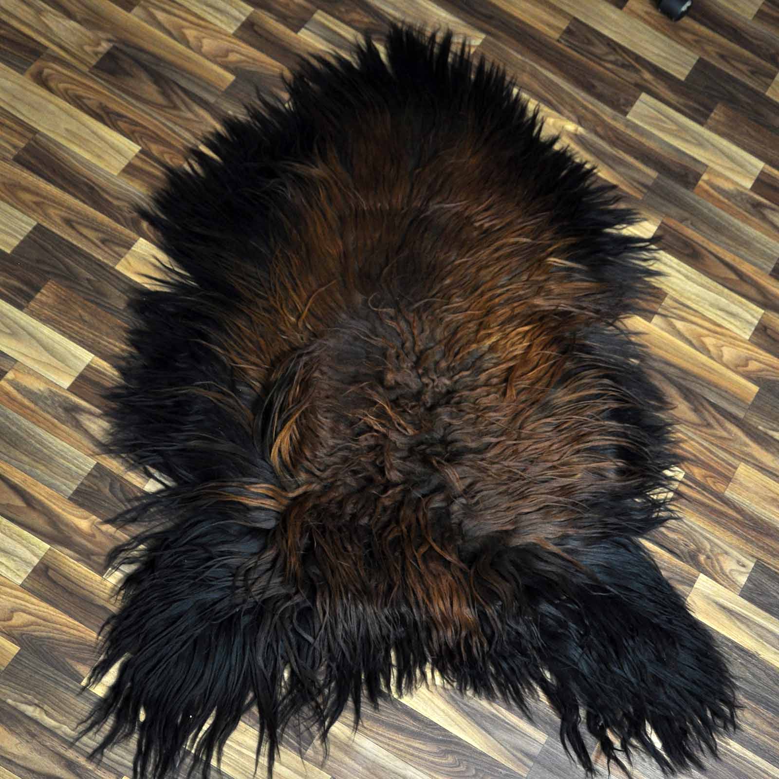 XXL ÖKO Island Schaffell schwarz braun geflammt 120x80 Feuer Kamin #8050