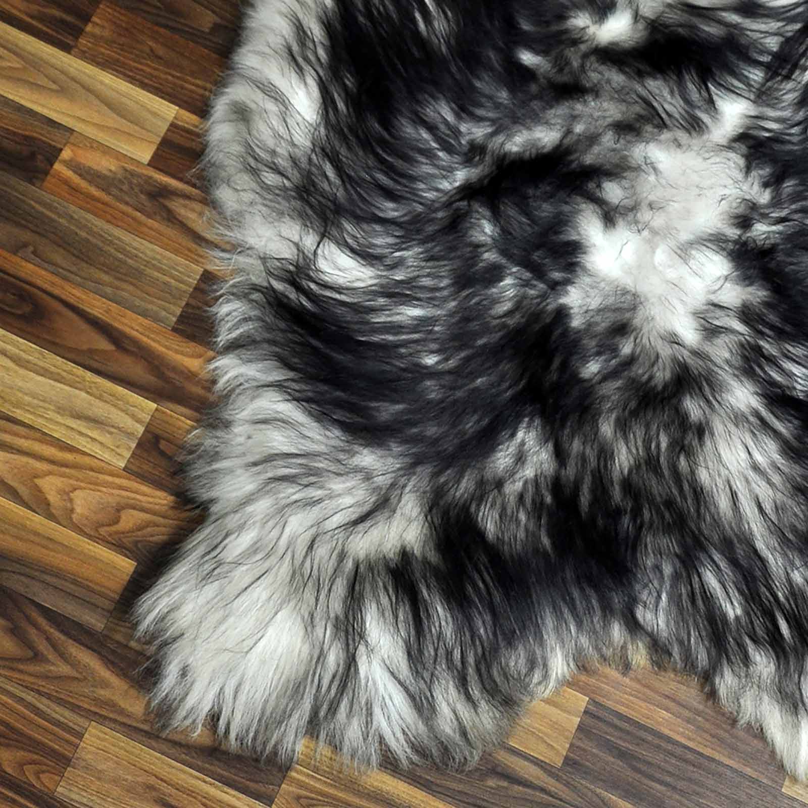 XXL ÖKO Island Schaffell weiß schwarzbraun geflammt 125x80 #7652