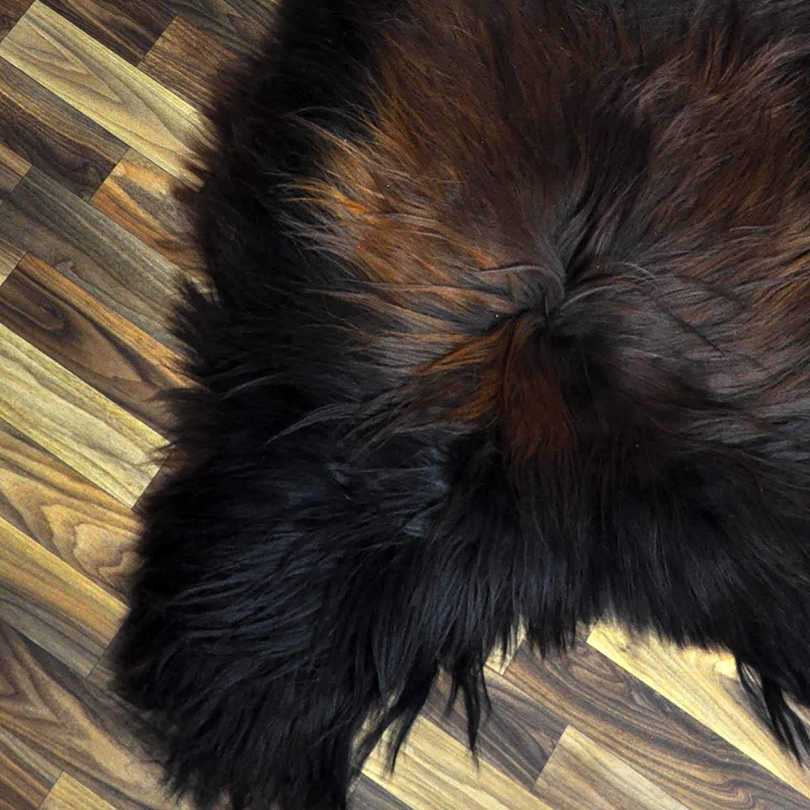 XXXL ÖKO Island Schaffell schwarz braun geflammt 130x80 Feuer Kamin #9649